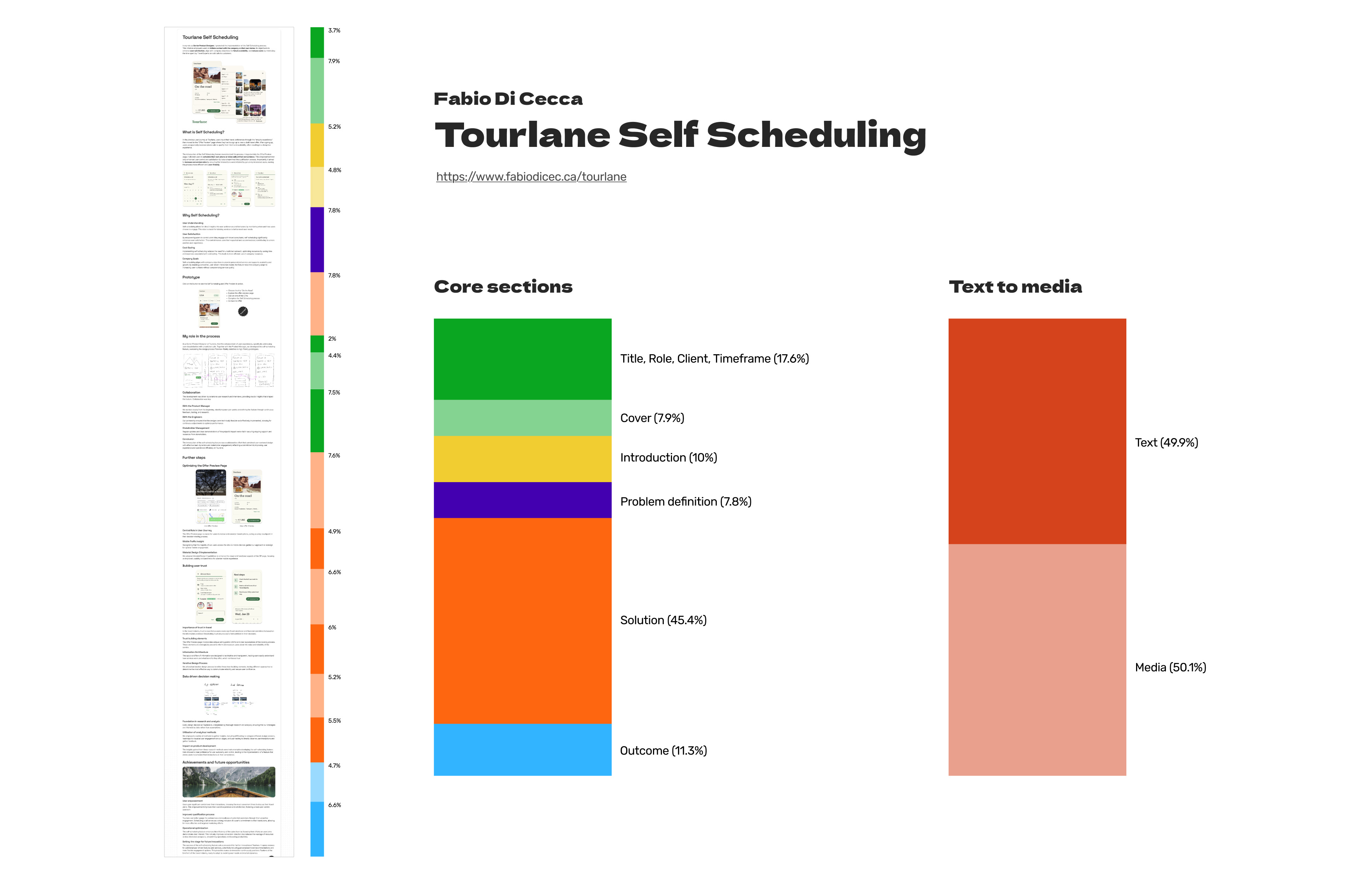 Because we are visual beasts, we complement our case studies with many visual aids, such as videos, mockups, user personas, user flow diagrams, and core components from design systems. What’s the good ratio of text to media? Maybe that’s a way to create a formula for the perfect case study?
