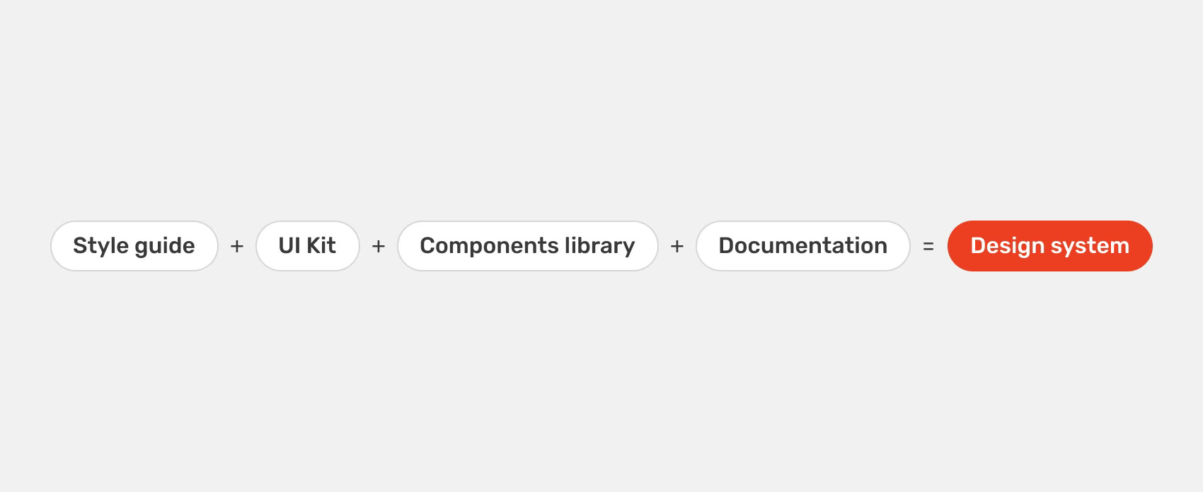 Let’s make it clear what a design system is not in the very beginning. We often hear that style guides, UI kits, or component libraries are called design systems. That’s a misconception. Let's define what each term stands for: