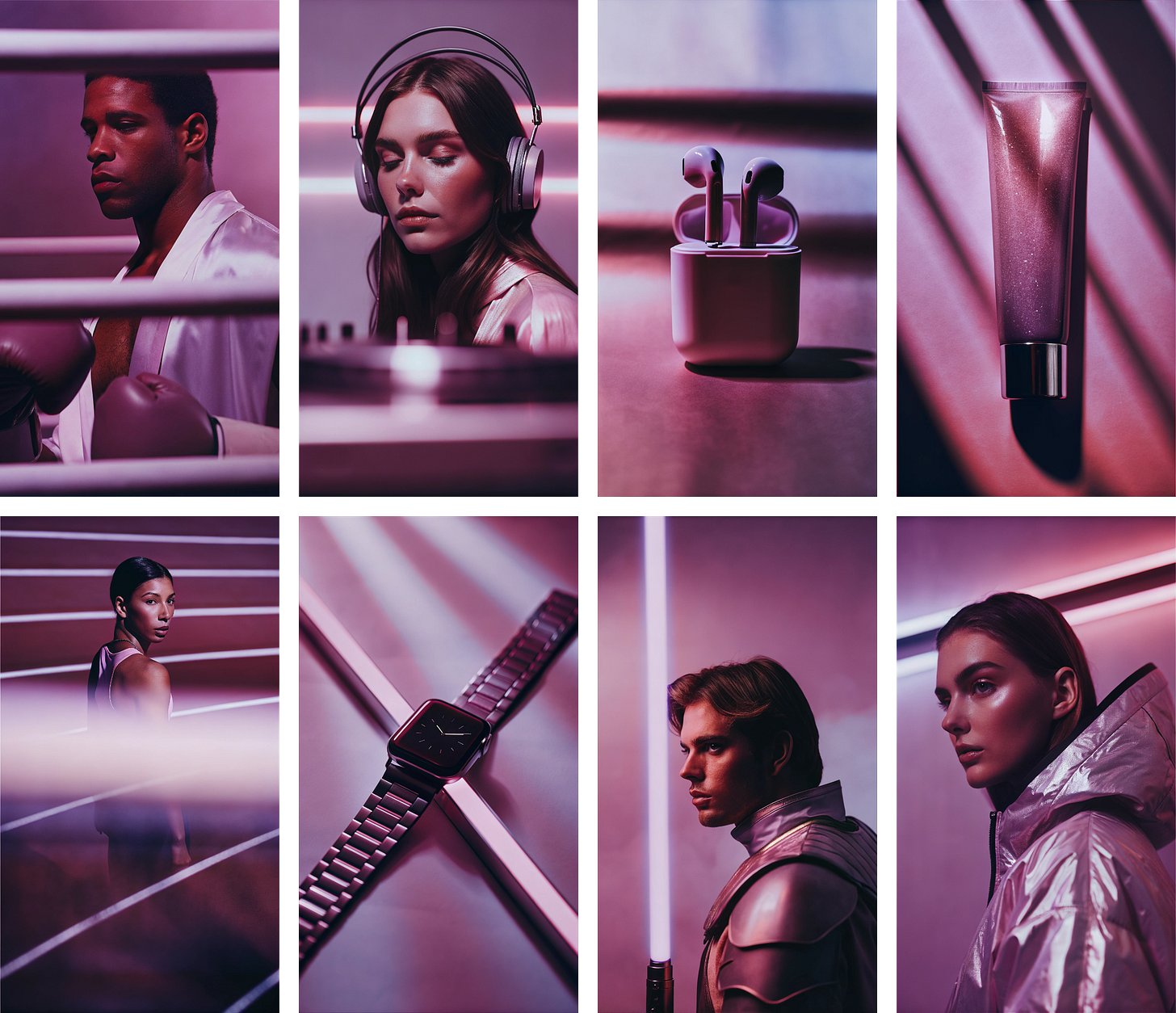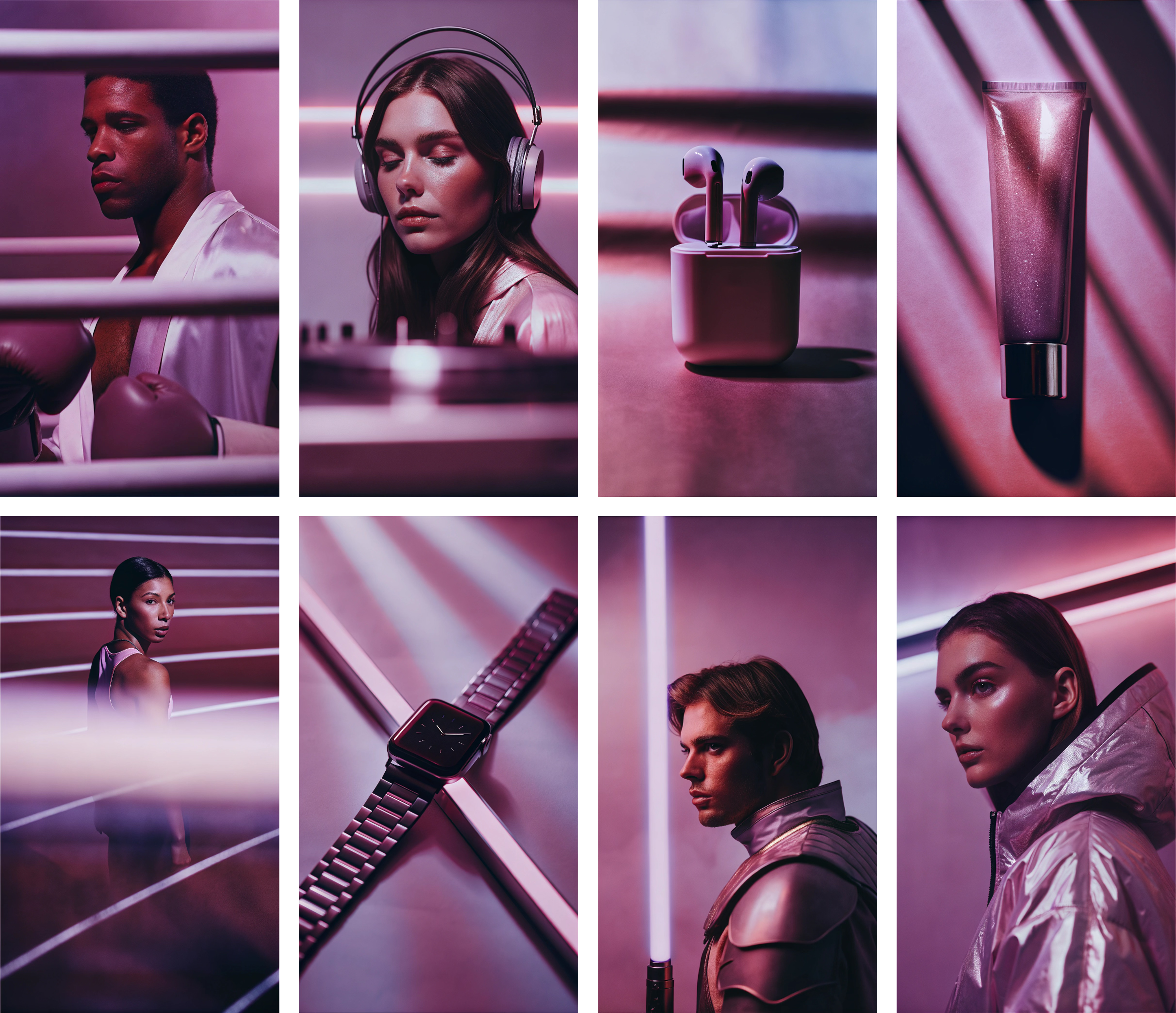 Now, for one of the two most interesting features, in my opinion. Consistent styles let you generate multiple images based on a selected style. You can choose from many predefined styles or create your own, which I will describe in detail later. With style consistency, you can produce cohesive visuals and other assets, such as icons, for your projects or for promoting your brand on social media without losing consistency. The effect of style consistency is clearly visible in the example below, where the brand’s products are presented in a visually coherent way.