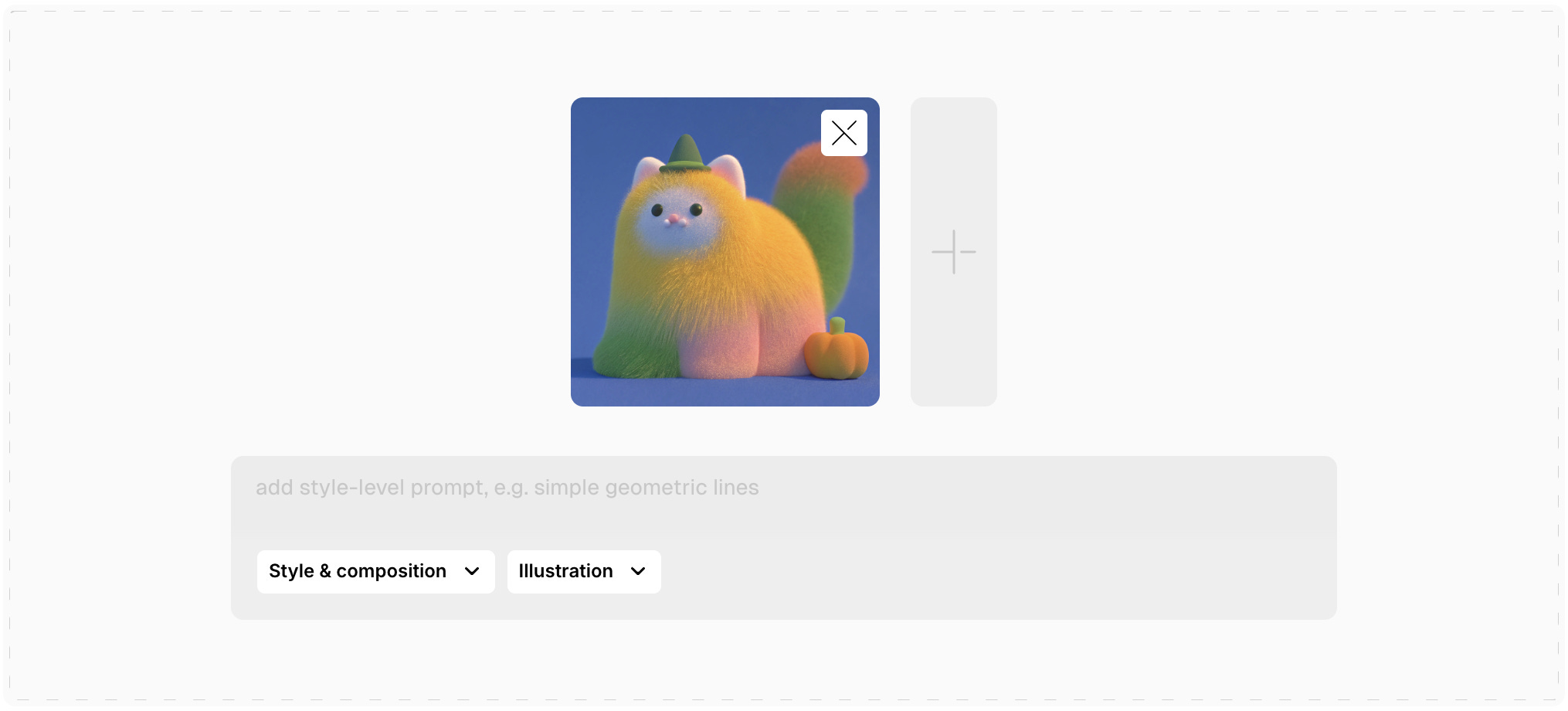 The examples below show how custom style creation works. First, you upload up to five reference images, then you can adjust how much each element influences the output, choose whether the style should focus only on basic attributes like color and texture or also preserve layout, and add a style level prompt.