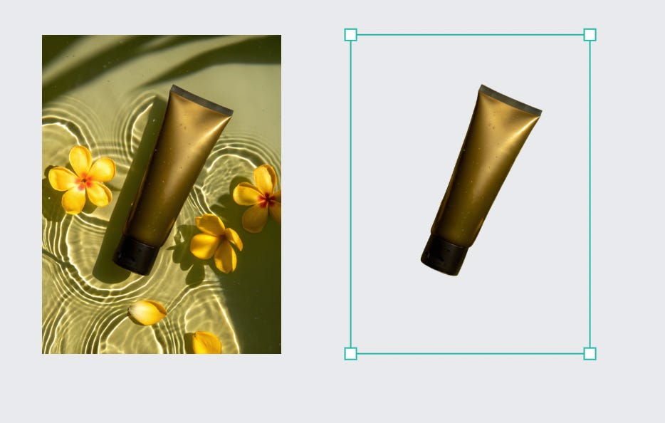 The tool also allows us to create realistic visuals for product mockups, either by placing the product directly in the composition or by using composition elements to embed our materials.