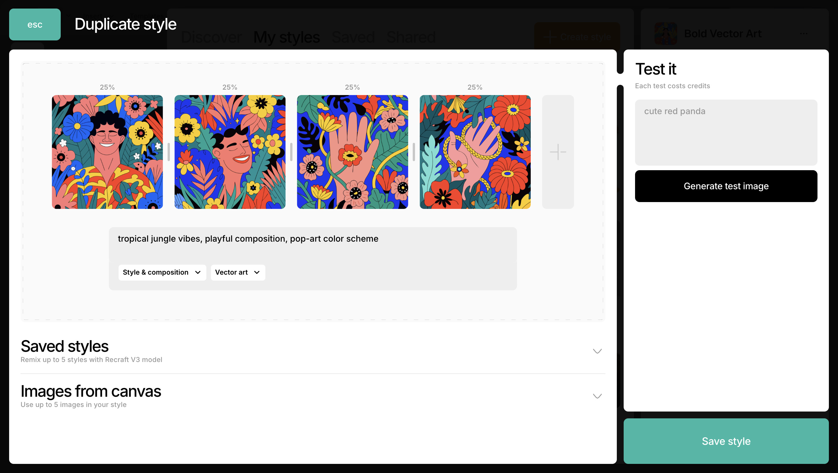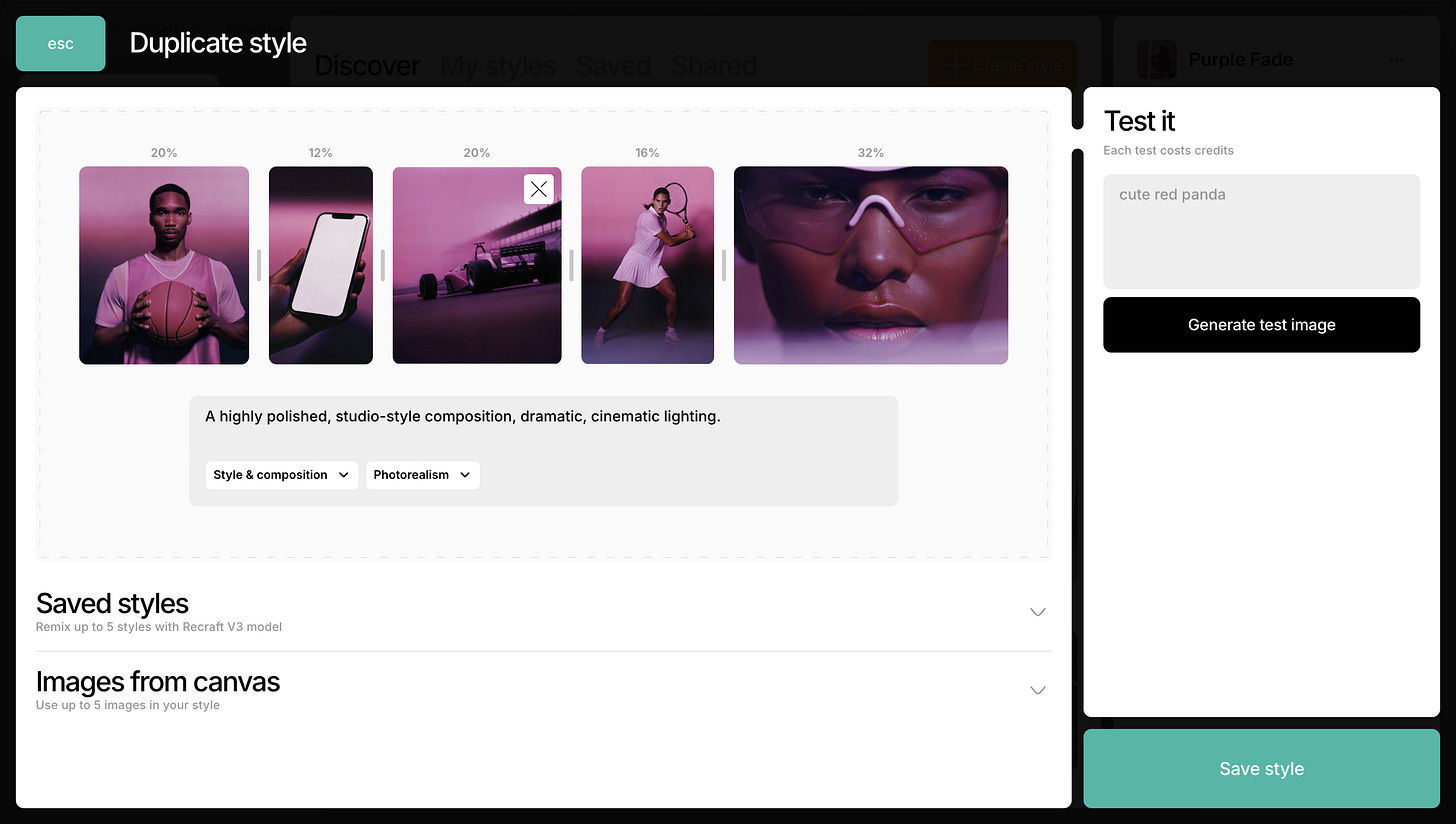 Finally, here is my favorite feature, the one I explore the most. I mentioned earlier that you can create consistent graphics based on your own style. Recraft gives us exactly that. If you already have an established style for your company or personal brand, you can use previously created materials as references to build your own style that you can then reuse for new marketing assets that stay visually consistent with what you have created so far.