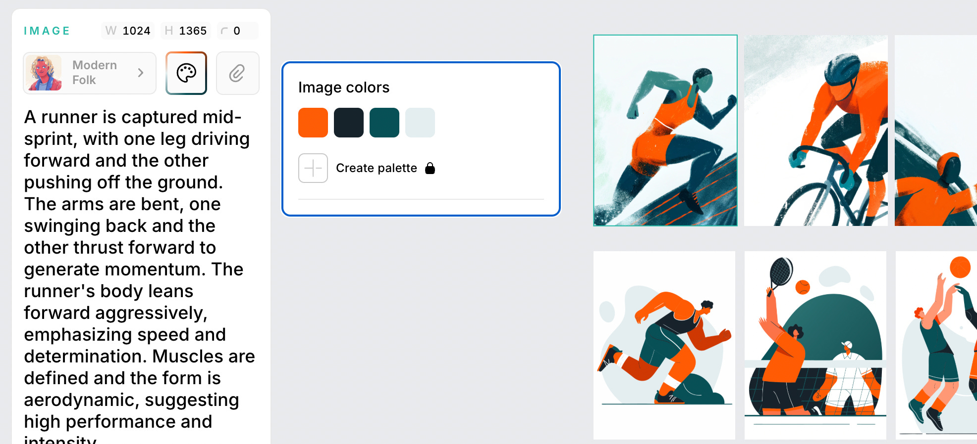 This feature makes it easy to match the colors of generated assets to a brand palette, edit colors in vector illustrations, or reuse colors from other graphics to align our generated materials with the company’s visual style and keep everything consistent.